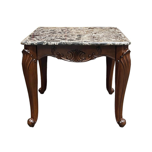 ACMEKD, Square End Table w/Marble Top • Curved Apron w/Scrolled Ornamental Details • Leg: Queen Anne w/Leaf Accent Chantelle - End Table - Antique Plat...