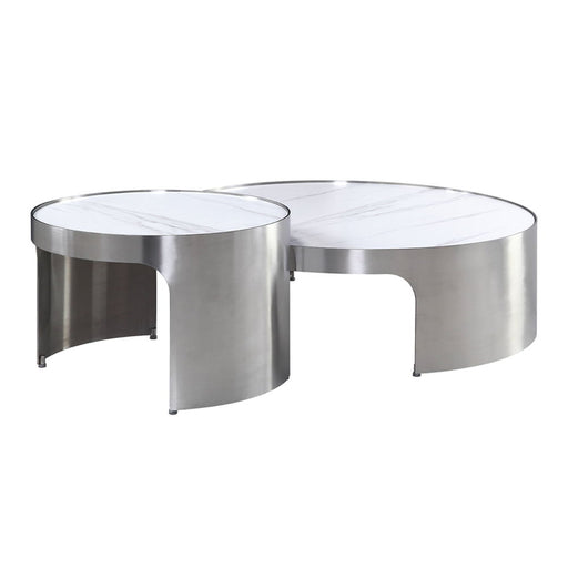ACMEAbilene - Nesting Coffee Table Set - Marble Top & Brush SilverProduct Features KD Round Nesting Cocktail Table Faux Marble Top: 20mm Stainless ...