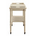 Pulling inspiration from traditional French design, the Frisco tray table collection is elegantly scaled and very functional. Featuring a removable tray and lower open storage, the table has fitted metal casters for mobility and in a style to tie in with the table design. The collection is available in 3 antique colors of slate, green, and white.