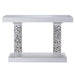 The Kachina Console Table will add a contemporary touch to any room in your home. With its clean lines, this brilliant rectangular occasional table showcases a distinctive style for an intriguing look. The table features tempered glass and a fully mirrored frame with mirror base with columns encrusted with a spectacular faux gem inlay. This beautiful accent table will modernize any space you place it.