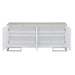 Introducing our stunning Liam console cabinet - the perfect addition to any modern home. With its white-washed oak finish and blue and gold marble printed door fronts, this cabinet is both stylish and functional. The unique combination of colors and textures creates a chic and sophisticated look that will elevate any room. The cabinet features ample storage space for all your essentials, while the chrome base adds a touch of elegance and durability. Whether you're using it to store your media devices or as a statement piece in your living room, this console cabinet is sure to impress. The attention to detail and superior craftsmanship make it a standout piece that will enhance the look of any space.