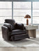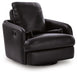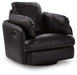 Details Corner-blocked frame with metal reinforced seat, One-pull reclining motion, Attached cushions, High-quality foam cushions wrapped in poly fiber, 100% top grain leather covers inside areas such as the back, seat and arm cushions; skillfully matched faux leather covers the remaining areas, Due to its natural origin, real leather can show individual characteristics such as healed scars, growth marks, grain variation and shade variation, Natural variations make each hide unique and do not detract from the wearing qualities of leather, Gentle gliding motion, 360-degree swivel