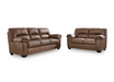 Modern comfort never looked so good. Sporting supremely soft yet durable cushions accented with high-fashion jumbo stitching, this stunning seating package is the ultimate choice in comfortably cool, contemporary style. The set's caramel-hued faux leather indulges with an upscale feel and wows like the real thing.