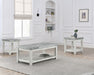 A light and airy table set to any living area, Canova offers the elegance of a marble top table in a more relaxed presentation. A gray marble top veneered offers a subtle contrast to the substantial legs and slotted shelfs of the tables in a streamlined look that creates a bold profile that accents a room. The Cathedral White finish over Ash Veneers and Poplar solids create a neutral but not demure aesthetic that is perfect for Coastal, Farmhouse, Transitional or just open and airy interiors.