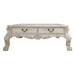 This rich Dresden coffee table is a stunning and elegant addition to any home. This coffee table features intricate scrollwork throughout, adding a touch of opulence and sophistication to the piece. Boasting an elaborate design, featuring a finish that creates a classic and timeless look. The two drawers provide space for you to hold remotes and magazines. Overall, this lavish is a statement maker that will add a touch of luxury and elegance to any home.