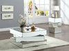 Bring home this Haven coffee table to add a distinctly modern look to your living room or den. This eye-grabbing table from Meridian Furniture features a triple-stacked platform design in a square shape for a geometric look that's more like a piece of fine sculpture than the true utilitarian item it truly is. The surfaces of the table are mirrored, adding a light, airy touch to your space and giving it a beautiful aesthetic in contemporary decor.