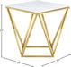 The Mason table, by Meridian Furniture. Featuring a beautiful contemporary design. Constructed of gold finished stainless steel and solid stone top, it's guaranteed to be the highlight of any room.