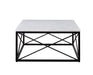 A modern occasional collection featuring a unique modern latticework iron base with stunning white marble tops. This mixed media set feels light and airy but its marble tops give extra durability for heavy duty use in the toughest environments, the family room. Bring style and beauty to your living room tables with Skyler by Steve Silver Company.