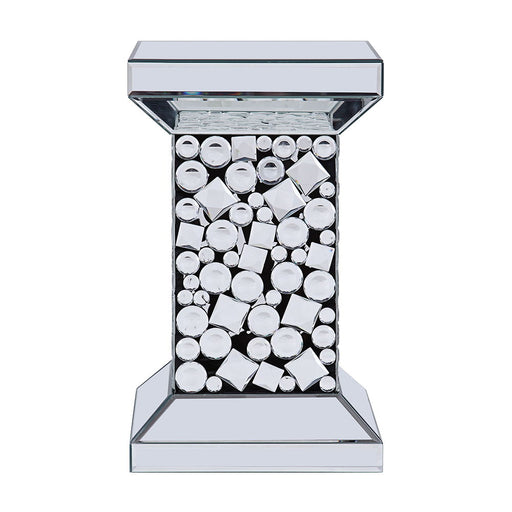 ACMENysa - 20" End Table - Mirrored & Faux CrystalsProduct Features Square End Table Glam Style (NO Storage) Beveled Mirrored Top & Shelf Colum...