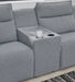 Details Includes 3 modular pieces: left-arm facing power recliner, console and right-arm facing power recliner, "Left-arm" and "right-arm" describe the position of the arm when you face the piece, Versatile modular pieces fit together in a variety of configurations, One-touch power control with adjustable positions, Easy View™ adjustable headrest and zero-draw USB port, Zero-draw technology only consumes power when the USB receptacle is in use, Corner-blocked frame with metal reinforced seat, Attached back and seat cushions; high-quality foam cushions wrapped in poly fiber, Polyester upholstery; Next-Gen Nuvella™ is a family-friendly fabric that is soft, easy to clean, stain-resistant and durable, Clean fabric with mild soap and water, let air dry; for stubborn stains, use a solution of 4 oz. bleach to 28 oz. water, Throw pillows with easy-to-remove zippered covers for machine washing; pillows with soft polyfill, Console with plexiglass top and 2 cup holders, Zero wall recliner design requires minimal space between wall and chair back, Power cord included; UL Listed