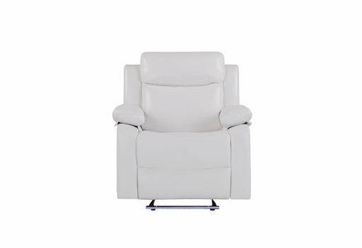 Global Furniture USAThe U6026 Glider Recliner is the perfect solo seat for relaxation. Upholstered in sleek blanche white, it combines smooth manual reclining with gen...