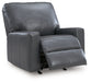 | Details | Pull tab reclining motion, Gentle rocking motion, Corner-blocked frame, Attached cushions, High-quality foam cushions wrapped in poly fiber, 100% top grain leather covers inside areas such as the back, seat and arm cushions; skillfully matched faux leather covers the remaining areas, Corrected grain leather; two-tone sauvage effect enhances the depth of the color, Due to its natural origin, real leather can show individual characteristics such as healed scars, growth marks, grain variation and shade variation, Natural variations make each hide unique and do not detract from the wearing qualities of leather, Exposed feet with faux wood finish | |