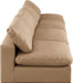 Give your space a whole new look with this tan Comfy vegan leather sofa. This handsome sofa fits nicely with other items in the Comfy collection and is a versatile seating option designed for adaptability, comfort and style. Wrapped in rich tan durable vegan leathered upholstery, this sofa offers a plush embrace of overstuffed down feather cushions, carefully crafted to deliver the highest level of comfort. The perfect seat for creating an oasis for relaxation, this sofa has thick foam surrounding its frame for added support and coziness.