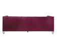 Looking to create a glamorous living room, look no further. The Heibero collection is ideal for that. Featuring timeless button tufting and the more modernized fine details such as the mirrored trim accents. The burgundy velvet upholstery is an eye-catcher. Have the best of both worlds contemporary and classic all in one with this collection. Solidly constructed, this sofa rests securely on four acrylic legs. This collection is a perfect solution for providing seating for you and all your guests.