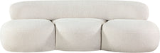Discover timeless beauty with this Venti boucle fabric living room sofa that's designed to elevate your interior space. This exceptionally crafted art-deco-inspired chair is part of the Venti collection and boasts an alluring curved shape to add elegance and refinement to your room. Upholstered in rich boucle fabric, the sofa has a plush texture that's oh-so-cozy against the skin. The art deco styling makes it a real statement piece, whether you place it in your living room, home office, or your favorite reading nook.
