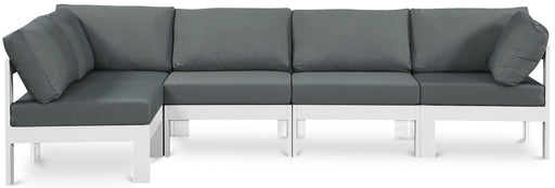 Meridian FurnitureNizuc Waterproof Fabric Outdoor Patio Modular Sectional 5PC Nizuc - Outdoor Patio 5 Piece Modular Corner Armless Sectional With White Frame - Gray9...