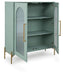 | Details | Made with engineered wood, Light green finish, Goldtone metal door pulls and legs, 2 doors with fluted glass panels, 2 shelves, Minor assembly required, simply lay flat and attach feet | |