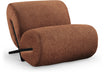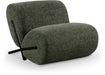 The Akira fabric upholstered accent chair features soft polyester fabric and a black finish solid wood frame, blending comfort with striking design. Its bold, Art Deco-inspired silhouette showcases a sculptural form, making it a standout piece in any modern space. With plush upholstery and a uniquely structured wooden base, this chair offers both visual intrigue and cozy relaxation-perfect for those who appreciate artistic yet functional furniture.