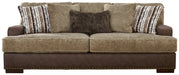 | Details | Corner-blocked frame, Loose seat and back cushions, High-resiliency foam cushions wrapped in poly fiber, Polyester interior upholstery and faux leather exterior upholstery, Throw pillows included, Pillows with feather-fiber fill, Bronze-tone nailhead trim, Platform foundation system resists sagging 3x better than spring system after 20,000 testing cycles by providing more even support, Smooth platform foundation maintains tight, wrinkle-free look without dips or sags that can occur over time with sinuous spring foundations | |