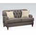 The Alianza loveseat is an ideal choice for any living room. This loveseat features a diamond tufted backrest, tight back and loose seat cushions. The fabric with brown fly wheel legs in the front and wooden legs in the rear, alongside the English curved arms this loveseat is the essence of class and style. Two pillows are included for extra comfort and back support. Add this loveseat to any living room for the perfect centerpiece. Fully Assembled.