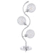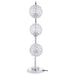 Sparkling with glamour, this modern three-light table lamp is a superb choice for a sophisticated living space. A corkscrew inspired post gleams in a chrome finish and hosts its three lights. Each features an orb shade dotted with crystal-like embellishments that glitter in the light. Three LED bulbs use just 4 watts of power each, creating a lamp that's both stylish and energy efficient. It operates with a touch switch, perfect for easily turning it on in the dark.