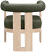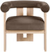 Wrapped in ultra-luxe velvet, the Arienzo upholstered chair captures the elegance of Art Deco design. Its rounded backrest and plush seat rest on sturdy natural-finished solid wood legs for a look that's both sculptural and inviting. A true statement piece, it adds warmth and sophistication to any room.