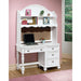 The Athena collection, hutch is the perfect complement to its matching desk. This hutch is crafted in a white finish and features a curved top with two shelves. With little details like a bottom shelf with an intricate scalloped edge and a corkboard panel, this desk is ideal for your little girl personalize her workspace.