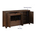 Clean design, rustic charm and exceptional storage combine in the Auburn Server.Its lustrous dark tobacco finish features burnished highlights and gently rubbed edges, creating a casually rustic ambiance. This 71-inch server provides generous storage for all your dining necessities, boasting two felt-lined drawers, three adjustable shelves, and a removable wine rack discreetly tucked behind four magnetic catch doors.