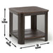 - Styling details include wire-brushed, plank-effect top, wire mesh ends and black metal accents.