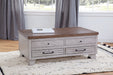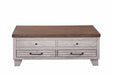 Add some function to your Cocktail Table with the Lift-Top Cocktail from Bear Creek! Perfect for your farmhouse-inspired home, the Bear Creek Lift-Top Cocktail Table offers just the right mix of casual design and lift-top functionality to create the perfect table set for today's rustic homes. The lift-top allows you to work or eat right from your sofa while offering storage below the lift-top and in the bottom drawers of the table. The two-tone combination of white and honey smoke finish works well with any casual upholstery setting and features distressing that makes the table look like a vintage heirloom in any room.