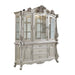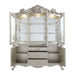 An ode to traditional glamour, the Devayne dining table brings in all the allure and charm that you are seeking for a dining table. The table features an extension leaf that allows for additional dinner guests. The champagne finish enhances the beautiful floral moldings on the legs and apron. The tabletop features mirrored panels that highlight your dinnerware.