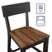 The Bermuda 24-inch counter stool merges industrial design with farmhouse flair. Its lustrous black finish and dark acacia seat elevate any 36-inch high counter setting. Whether in the kitchen or paired with the Bermuda Counter Dining Set, this chair offers comfortable seating with a subtle edge. A scooped seat and curved back ensure comfort, while a metal footrest and exposed back bolts add durability and style. Experience stylish, inviting seating for casual meals or entertaining guests with the Bermuda counter stool.