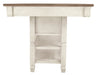 | Details | Made of veneers, wood and engineered wood, Two-tone textural finish; antique white with weathered oak finished top, 4 drawers; 2 each on each side, Storage rack holds up to 7 wine bottles, Seats up to 6, Assembly required | |