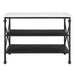 Minimalistic design paired with clean, simple color. The Brahm Kitchen Island gives off a light and airy feel to a compact cooking space. Clean-lined metal frame is topped with a artificial stone top, creating a sleek, modern silhouette that gives your kitchen an open feel. Spacious rectangular table top with two tier shelf provides more countertop space and storage. Use this stylish yet functional addition to complete your kitchen decor.