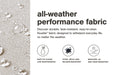 | Details | Includes 6 modular outdoor lounge chairs, Aluminum frame, Solution-dyed high-performance fabric, Nuvella® is an outdoor fabric that can be cleaned and offers UV resistance, Stainless steel hardware, Designed to withstand the harsh elements of the outdoors, Cushioned seat, Back cushion included, Includes PVC protective weather cover, Clean fabric with mild soap and water, let air dry; for stubborn stains, use a solution of 1 cup bleach to 1 gallon water | |