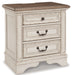 | Details | B743-46: Made of veneers, wood and engineered wood, with cast resin components, Antiqued two-tone finish, Dark bronze-tone finished metal hardware, 5 smooth-gliding drawers with dovetail construction, Includes tipover restraint device, Small Space Solution, Includes tipover restraint device, B743-93: Made of veneers, wood and engineered wood, with cast resin components, Antiqued two-tone finish, 3 smooth-gliding drawers with dovetail construction, Dark bronze-tone finished metal hardware, 2 electrical outlets and USB charging ports, Power cord included; UL Listed, Small Space Solution, B743B1: Made of veneers, wood and engineered wood, with cast resin components, Antiqued two-tone finish, 7 smooth-gliding drawers with dovetail construction, Dark bronze-tone hardware, Mirror attaches to back of dresser, Assembly required, Includes tipover restraint device, B743B10: Made of wood and engineered wood, with cast resin components, Includes headboard, footboard and rails, Distressed, chipped white finish, Polyester upholstery with foam cushion and button tufting, Foundation/box spring required, sold separately, Mattress available, sold separately, Assembly required, Bed is compatible with an adjustable base, | |