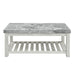 A light and airy centerpiece to any living area, Canova offers the elegance of a marble top table in a more relaxed presentation. A gray marble top veneered offers a subtle contrast to the substantial legs and slotted shelf in a streamlined look that creates a bold profile to center a room. The Cathedral White finish over Ash Veneers and Poplar solids create a neutral but not demure aesthetic that is perfect for Coastal, Farmhouse, Transitional or just open and airy interiors.