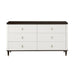 The Carena dresser is the perfect blend of timeless design and modern functionality. This dresser is crafted with care to enhance your bedroom's style and comfort. The white and brown finish exudes an understated elegance, creating an inviting atmosphere. The slatted drawer fronts of this piece provide visual appeal, while the six drawers add function to your bedroom. The tapered legs with metal tips add a touch of sophistication and durability. Perfect for anyone who values style and functionality.