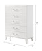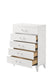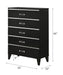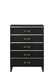 Explore modern simplicity that easily improve your overall aesthetic. The contemporary lines of this chest works perfectly with the temping finish, while decorative sliver trims add depth and reflect light. It offers five storage drawers with clear acrylic bar handles that bring a voguish, high-end feel to the piece. Simple design with clean lines let this chest can work well in rooms of all styles.