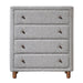 The classic design of the Cleo chest gets a chic update in a textured boucle fabrication, perfect for adding a whimsical touch to your bedroom. The ches'ts softly curved frame softens the overall look of this design while injecting a dash of trendy allure. This chest mixes mid-century minimalism with plush boucle upholstery and wooden legs. The four drawers provide plenty of storage space for clothes, helping you keep an organized room.