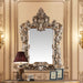 The grand Baroque style of the Constantine collection is sure to impress. With a beautiful bronze finish to emphasize the scrollwork and regal aspects of the collection. The bed features intricately carved embellishments and an oversized PU padded headboard, it is sure to be the focal point of your bedroom. The matching case goods provide style and plenty of storage with their ample drawers. Transform your bedroom into a glamorous boudoir with the Constantine collection.