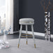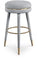 Liven up your breakfast nook with this Coral grey boucle fabric bar stool from Meridian Furniture. Its rich grey boucle fabric upholstery offers soft texture while you sit, and its swivel function allows you to twist and turn while you sit at the counter. This bar-height chair adds lift to your day while you swivel happily at your breakfast bar. It features brushed gold accents, giving it a contemporary design that complements any modern living space.