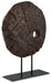 Elegantly adorn your bookshelf, mantel or dining table with this sculpture. Wood in an antiqued brown finish is brimming with natural beauty and adds warmth to your space. A sleekly styled black metal base grounds the piece.