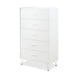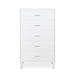This beautiful Deoss chest of drawers boasts of contemporary style, five drawers with metal drawer handles. Crafted with multi shades of wood, the raw wood texture enhances this dresser's sleek style and the drawers provide plenty of storage space for clothes and more.