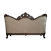 The designed ideal of Devayne collection come from traditional European palace. The introverted dark walnut finish, light pattern fabric come with the decorated pillow to show the difference life style. The intricately carved solid wood frame outlines the gracefully curved rolled arms. Bring this elegant set to your living room to create a noble and stylish space that everyone will admire.