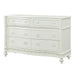 The Dorothy dresser is the perfect storage solution for a growing tween. It features six ample drawers that will hold all their clothes for their ever-changing style phases. The drawer fronts are embossed with floral details, and it has a ribbon bunting trim for an added girly touch. It sits on wooden bun legs that feature floral details. Finished in an ivory color that makes it easy to style around any existing color scheme. Keep clutter to a minimum with this gorgeous Dorothy dresser. The mirror is sold separately.