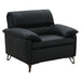 The Eilene sofa offers a luxurious blend of style and comfort with its black top grain leather upholstery. Full foam cushioning and a wooden inner frame provide robust support. Complemented by sleek aluminum legs, this sofa promises durability and modern elegance, making it the perfect centerpiece for any sophisticated living space.