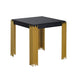 The Empire End Table is a sleek and durable addition to your living space. Crafted with eco-friendly manufactured woods and adorned with a sophisticated black finish, this table exudes contemporary charm while ensuring long-lasting strength and durability. Its modern metro style, characterized by gleaming gold tiered legs, evokes the enchanting ambiance of a city skyline shimmering under the stars. Elevate your space with the Empire End Table, where lasting construction meets stylish design.