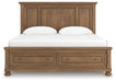 A relaxed take on casual traditional design, this king panel storage bed strikes a comfy pose with a classic sensibility. Its timeless design and chestnut brown wood tone create a welcoming retreat tailored to your laid-back lifestyle. Metal knobs in an aged pewter color subtly dress up footboard drawers packed with storage possibilities. Now there’s a bed with staying power.