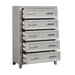 Discover the Fiona 5 Drawer Chest, a testament to craftsmanship where functionality meets artistry. Constructed with Acacia Solids, Manufactured Woods, and Oak Veneer, this chest combines the timeless allure of real wood with enduring strength and stability. The natural wood grain is brought to life with a meticulous multi-step finish, featuring wire brushing and white glazing, culminating in a light, clear mist gray hue that complements any interior. The chest’s design boasts sophisticated picture frame moldings, tapered legs, and sleek drawer pulls that echo a classic aesthetic. Its transitional style seamlessly adapts to both traditional and contemporary spaces, ensuring the Fiona Chest is a versatile addition to your home. The drawers, built with French front and English back dovetail joinery, ensure robust construction and glide smoothly on full extension glides for ease of use. Moreover, the drawers are sanded and sealed to protect your clothing from snags, while the top drawer is felt-lined to safeguard your delicate items. The Fiona 5 Drawer Chest is not just furniture; it’s a durable, stylish storage solution crafted for longevity and elegance.